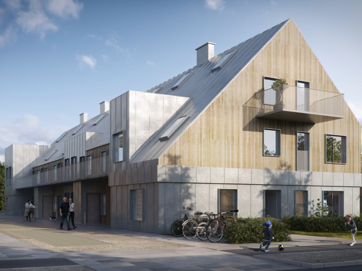 Vi har skapat 6 st punkthus med 79 lägenheter där taken består av solpaneler och är designade för att maximera elproduktionen vid exempelvis soluppgång.